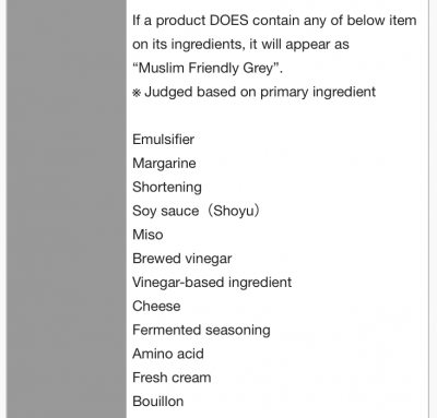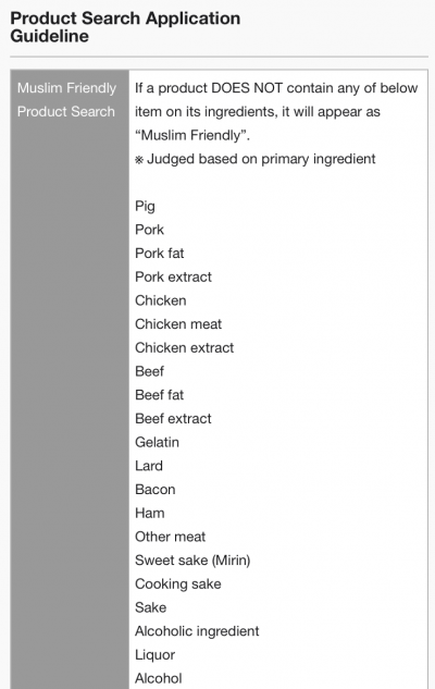 إن الذين يعيشون في اليابان والذين قدمو لزيارتها في رحلة يعانون من قلة توفر المنتجات صديقة المسلمين. حتى إذا قاموا بإستخدام القاموس أو سألو أحد الأصدقاء، هناك الكثير من المسلمين الذين يستغرقون وقتاً طويلاً من أجل العثور على منتجات صديقة المسلمين أثناء التسوق.