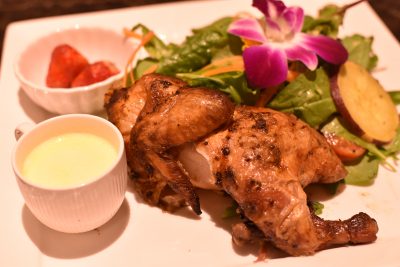 يتم تقديم هذه السلطة مع نصف دجاجة كاملة الذي سجعلك مندهشاً من تأثير هذا الطبق!