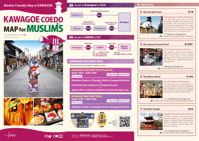 Peta “KAWAGOE COEDO MAP for MUSLIMS” yang dirilis kali ini adalah tentang aktivitas Inbound oleh Tobu Railway. Peta akan didistribusikan pada beberapa stasiun besar Tobu Railway, pusat informasi dan restoran di dalam kota.